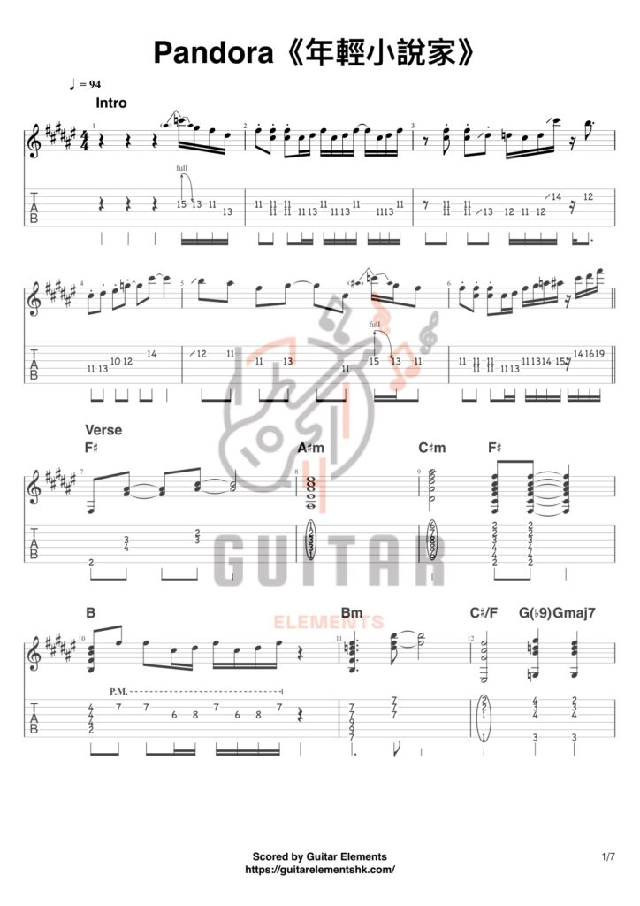 [Tab譜/琴譜] Pandora – 年輕小說家