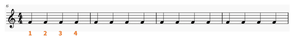 到目前為止,你應該已經熟悉以下四分音符的數法了: